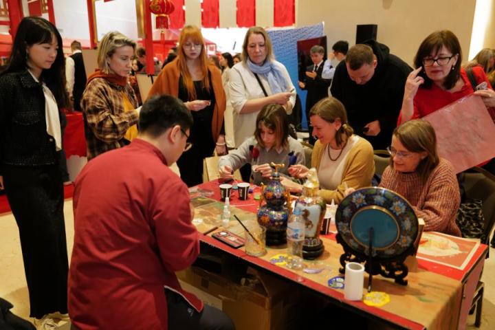 当地时间2月17日,中国农历大年初一,新春庙会活动持续升温。本次活动特别推出北京非遗大师班体验板块,聚焦景泰蓝与京剧脸谱体验。在非遗传承人指导下,俄罗斯当地民众亲手体验东方工艺的精妙,聆听色彩与线条背后的文化故事。与此同时,广场舞台上文艺演出轮番登场,与非遗互动体验相得益彰,让新春的喜悦氛围从舞台流淌至每位观众的心间。