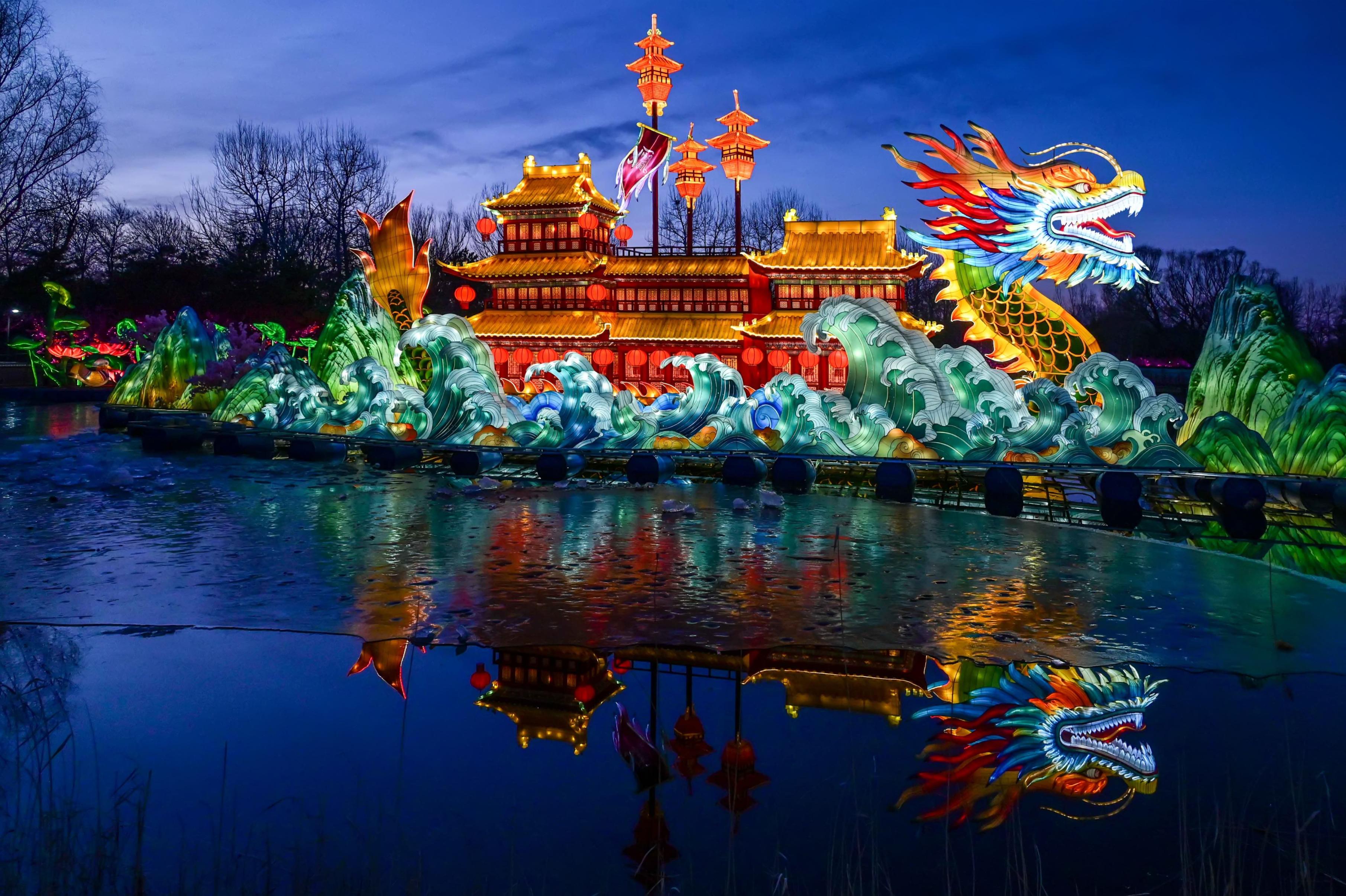春节期间,游客参观圆明园新春灯会,长达4.6公里的游览动线串联起五大主题灯区,一场融合园林意境、光影艺术与新春祥瑞的视觉盛宴在古园夜色中徐徐展开。卢斌 摄