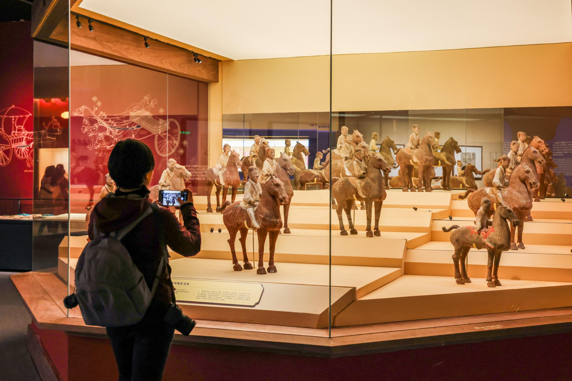 春节假期文博热持续升温,越来越多的市民游客选择将打卡博物馆作为欢度新春的新年俗。2月15日至23日,北京地区博物馆累计接待观众约328.415万人次,较去年同期增长20.61%。各大博物馆内人潮涌动,人们在历史韵味中感受文化年味儿。马年“话”马,各博物馆推出的生肖主题展览人气旺。市民游客纷纷到博物馆里寻“马”,解锁春节新玩法。从商代刻有“马”字的甲骨残片,到秦代的鞍马俑、西汉的木胎漆马,再到唐三彩黑釉陶马、宋代《狩猎图》、清代《十八骏图卷》……走进中国国家博物馆“跃马扬鞭——马年新春文化展”,各个时期不同的马形象让人目不暇接。徐悲鸿纪念馆的参观热度攀升,来自五湖四海的观众慕名参观“奔腾尺幅间——馆藏马主题精品展”,透过一幅幅经典画作,感受“自强不息、开拓奋进”的骏马形象。