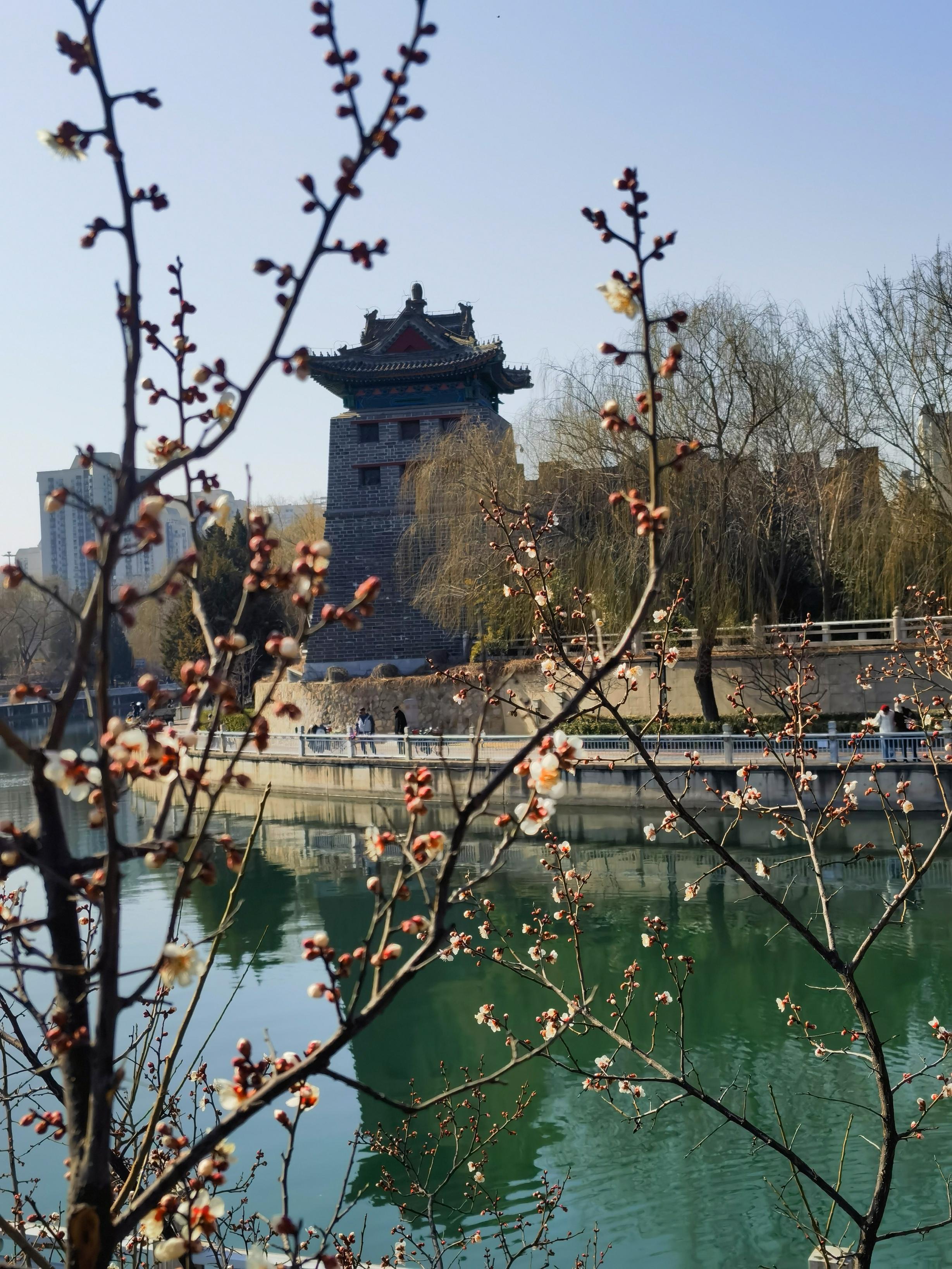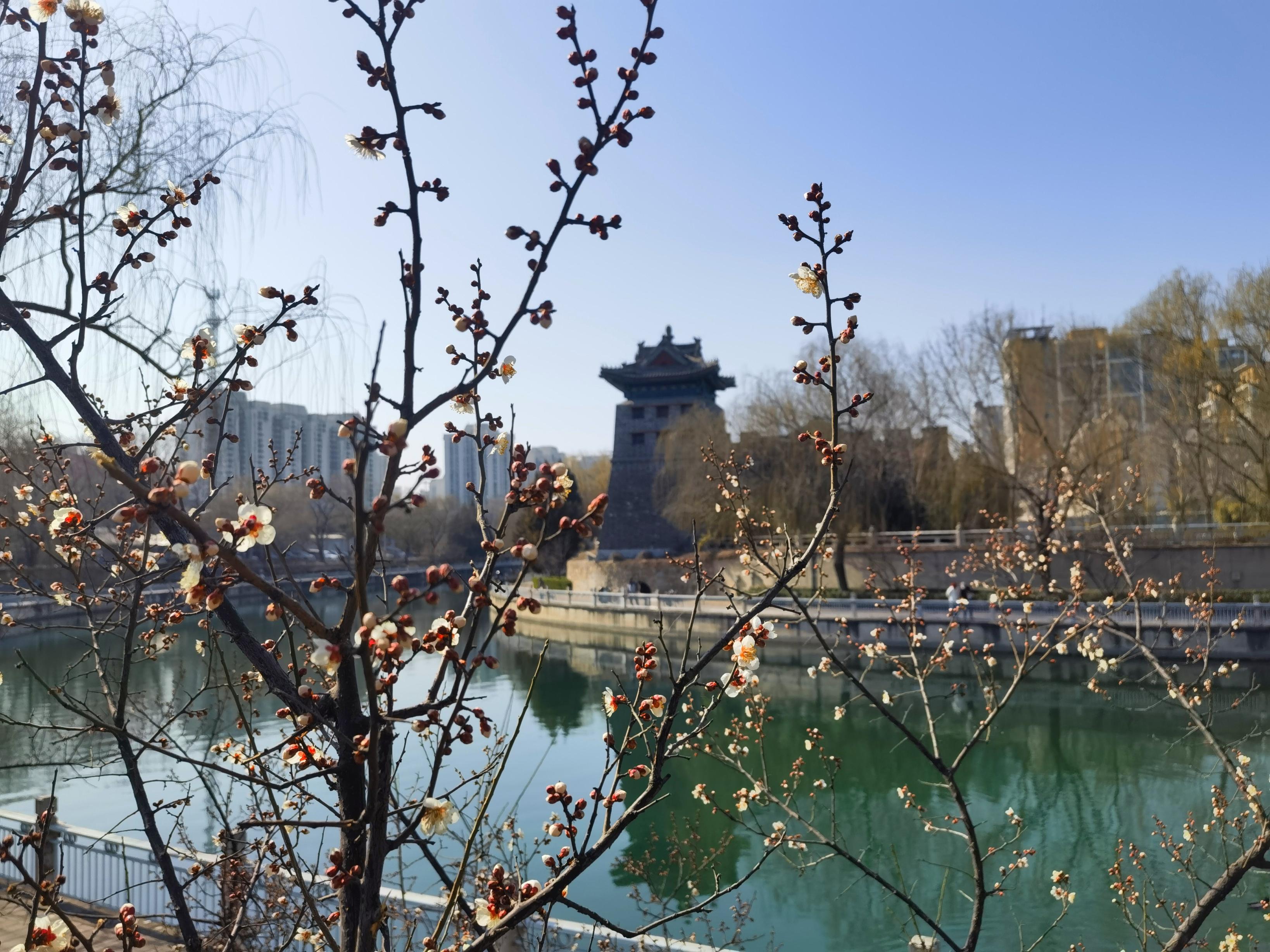 左安门角楼,梅花绽放。刘宪国 摄