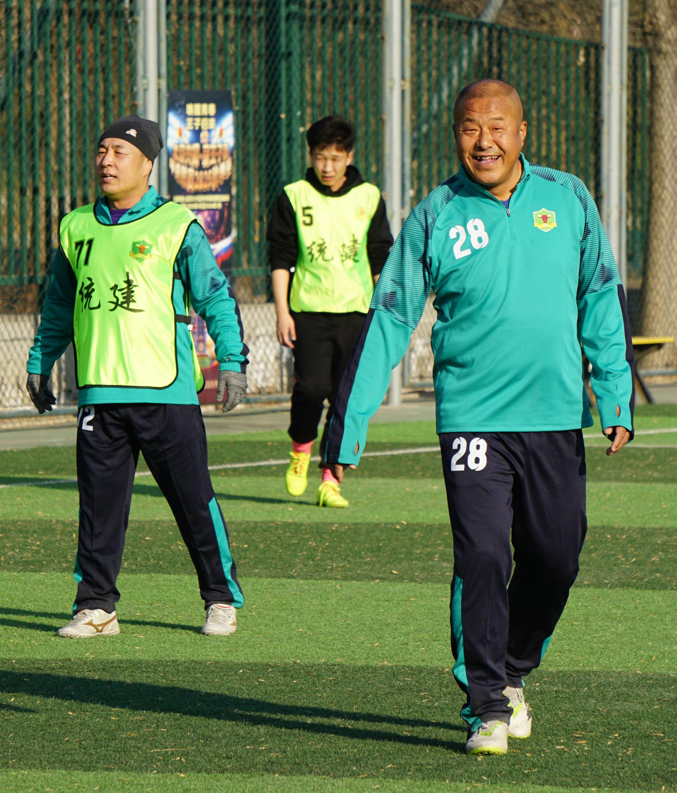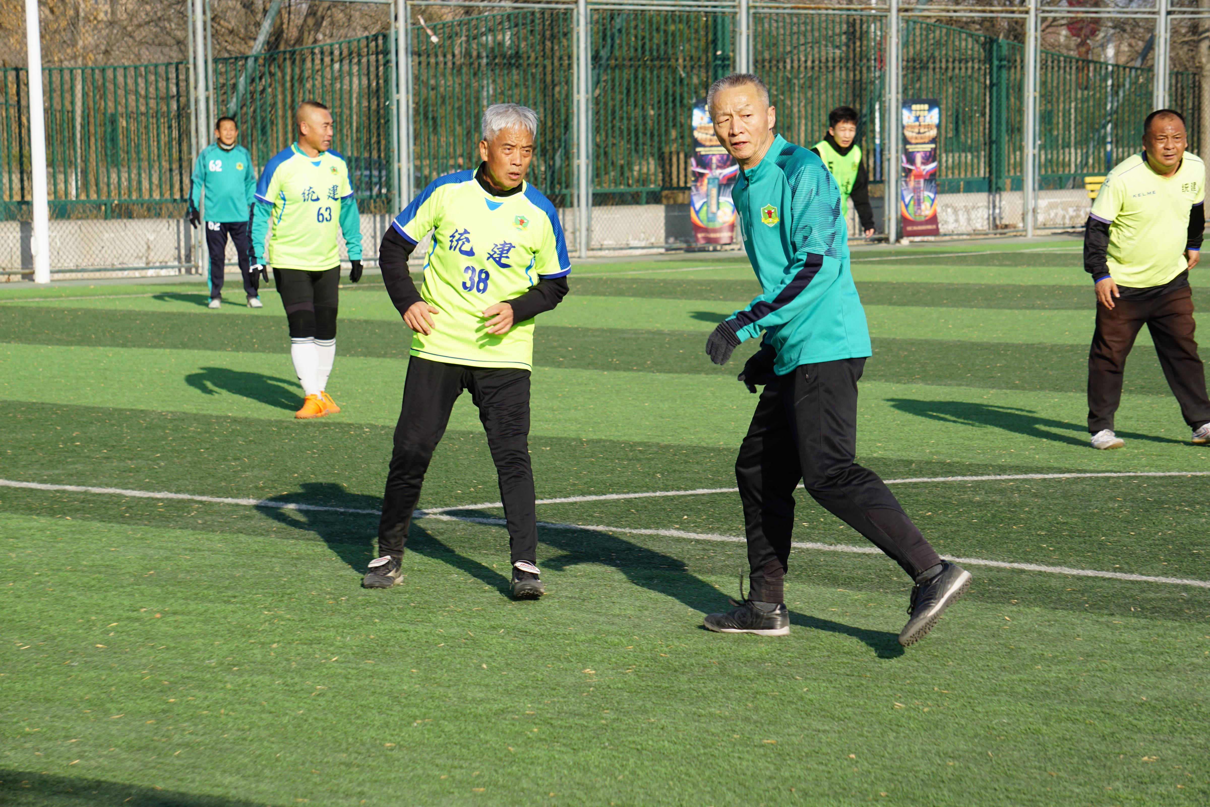 “嘿,老刘这球犯规。”“没毛病,我出脚慢了。”“你啊,还是后头待着去吧。”……像这样的“逗闷子”随时可能发生,球场上满是欢声笑语。与年轻人讲究带球过人、拼速度不同,老年人踢球,更讲究传切配合,这样也避免了很多没必要的碰撞。