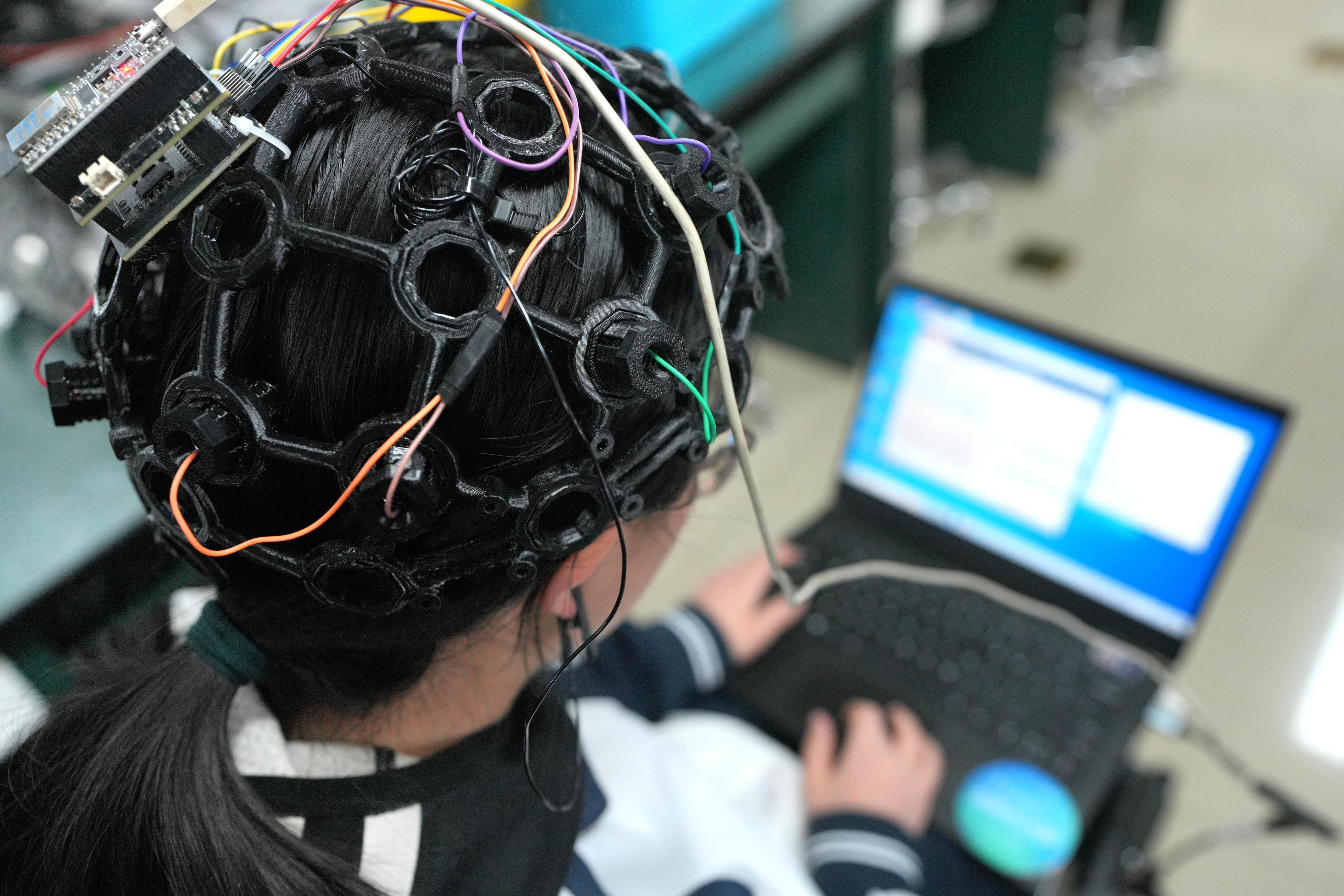 项目团队自行设计3D打印了可全头覆盖的蜂窝状采集头盔