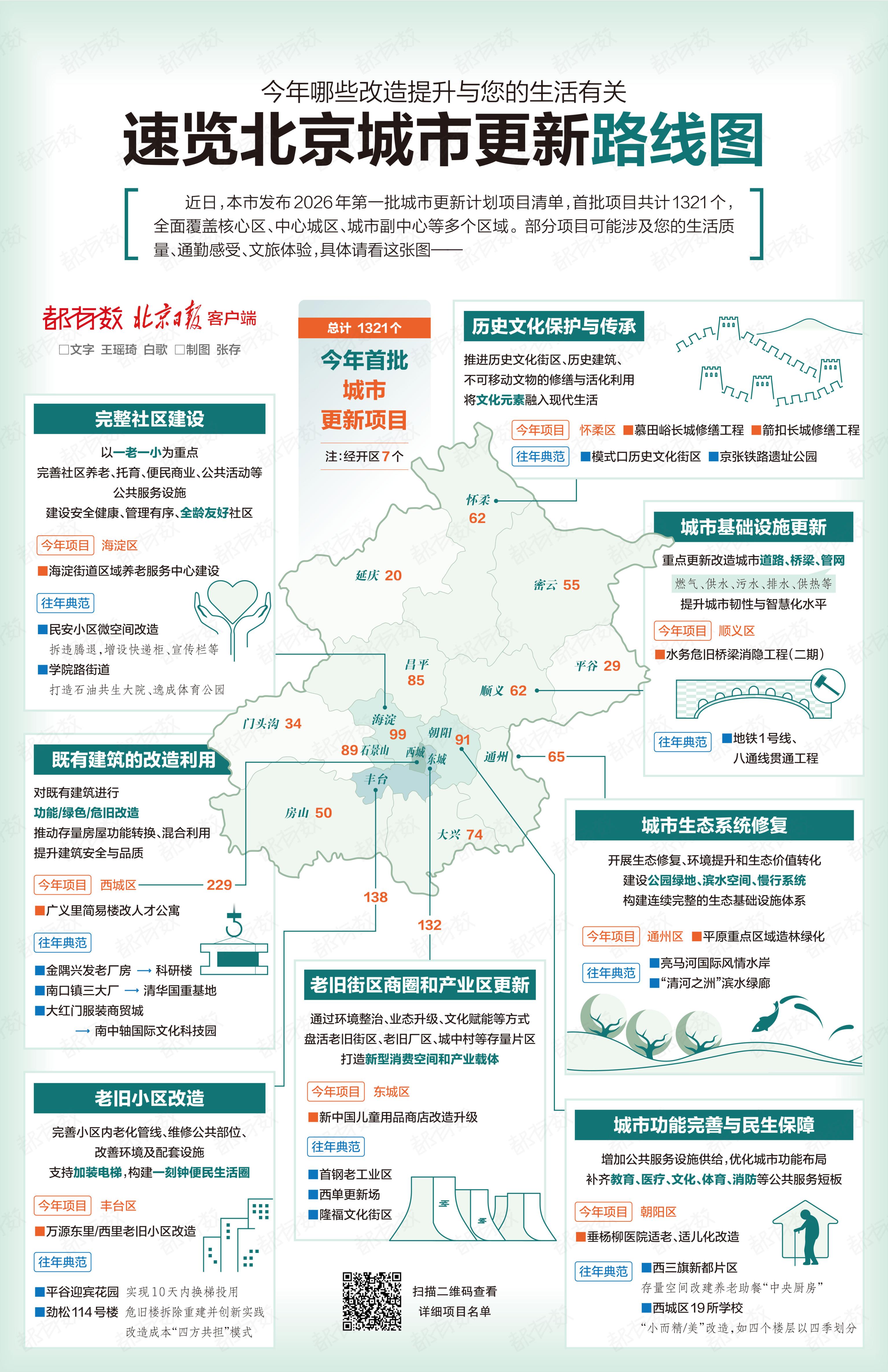 近日,北京市发布2026年第一批城市更新计划项目清单,首批项目共计1321个,全面覆盖核心区、中心城区、城市副中心等多个区域。部分项目可能涉及您的生活质量、通勤感受、文旅体验,具体请看这张图——
