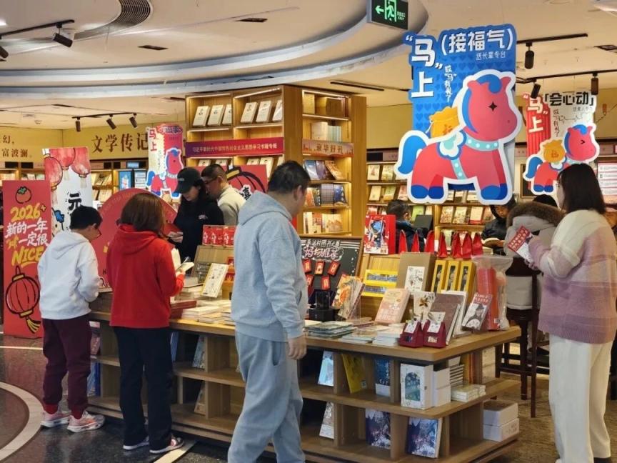 原创产品成为亮点。北京图书大厦围绕“马如一”IP打造生肖限定系列,中国书店推出的“马上青云”琉璃冰箱贴等特色产品,亚运村图书大厦的“邪修黑马”毛绒系列,王府井书店的店招冰箱贴、“马蹄印春”集章卡,均以独特文化符号引发共鸣。“马上有福气”新春大礼包也在各书店及庙会市集同步亮相,将书香福气带进千家万户。