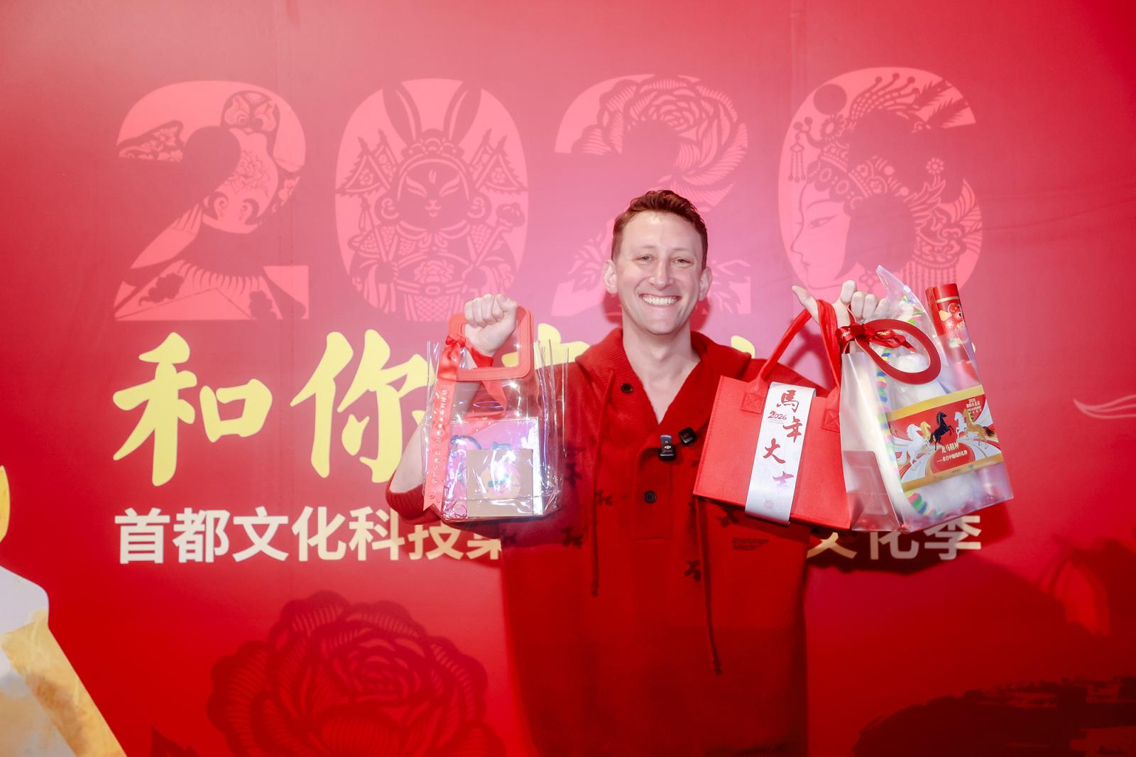 春节期间,国际友人埃文·凯尔专程到访首文科旗下五棵松耀莱影城体验文化市集中的中国年味儿,现场的“马上有喜柿”系列文创产品尤其令他印象深刻。
