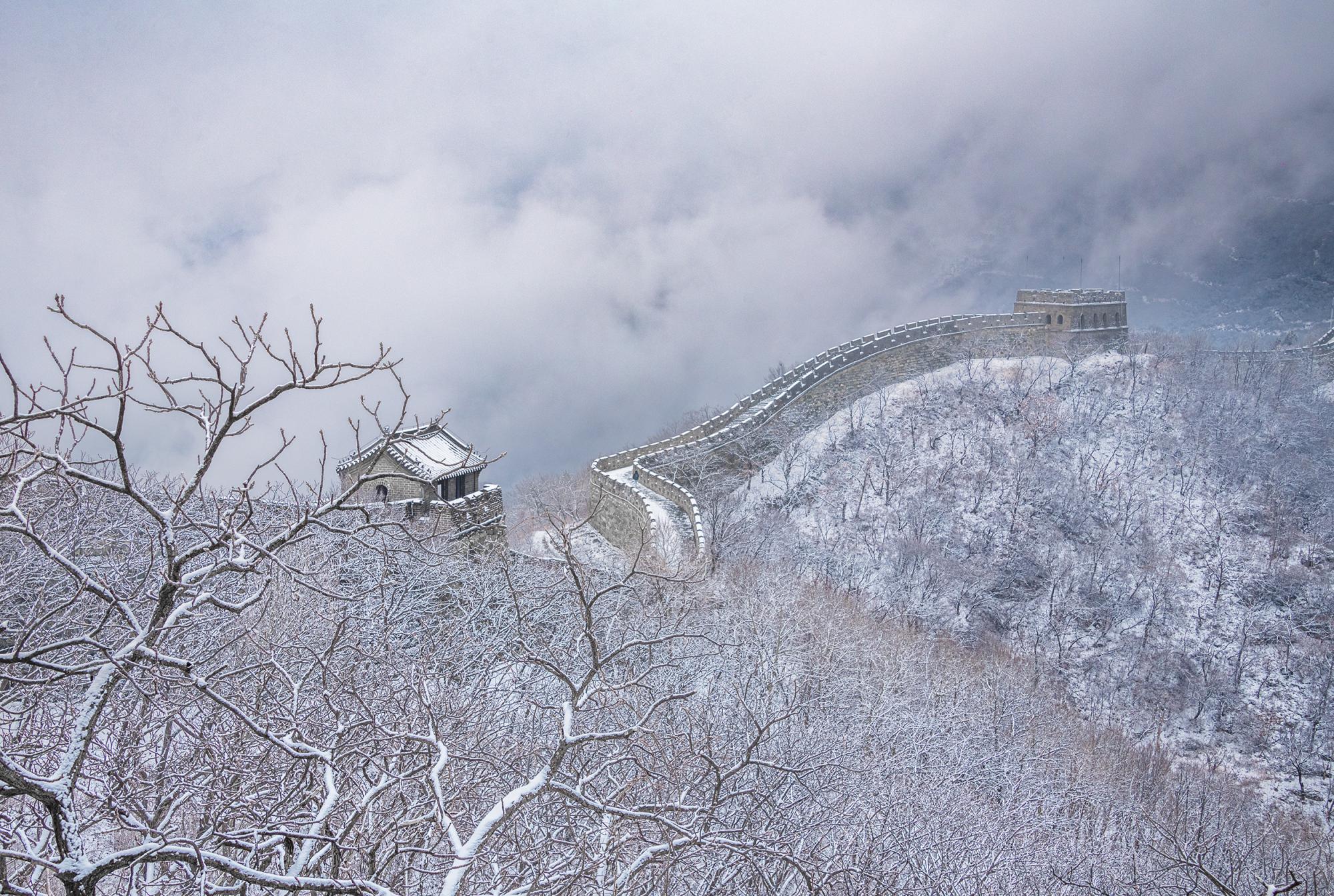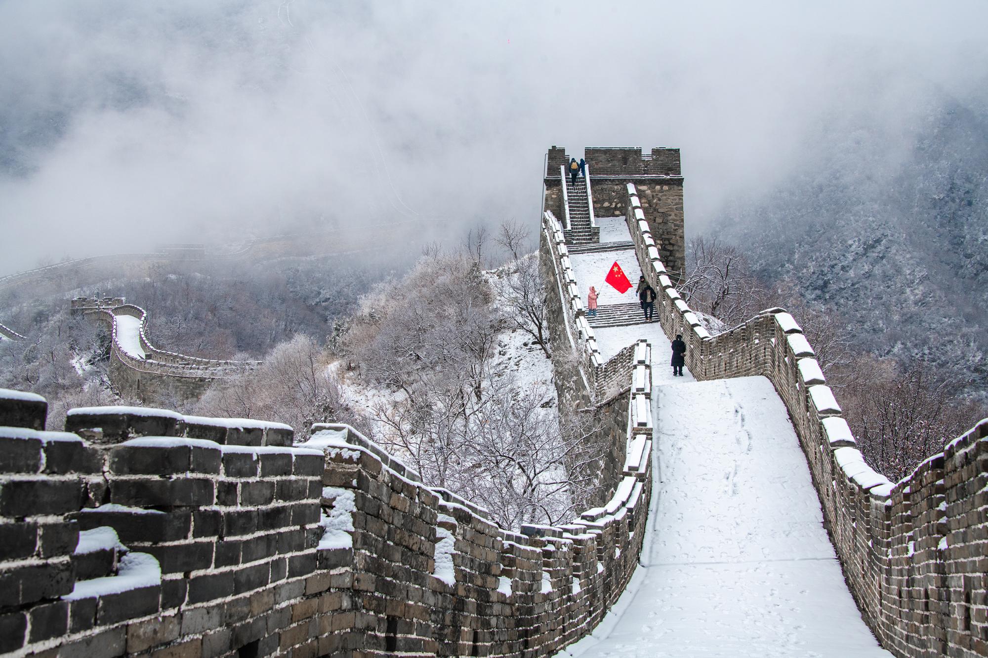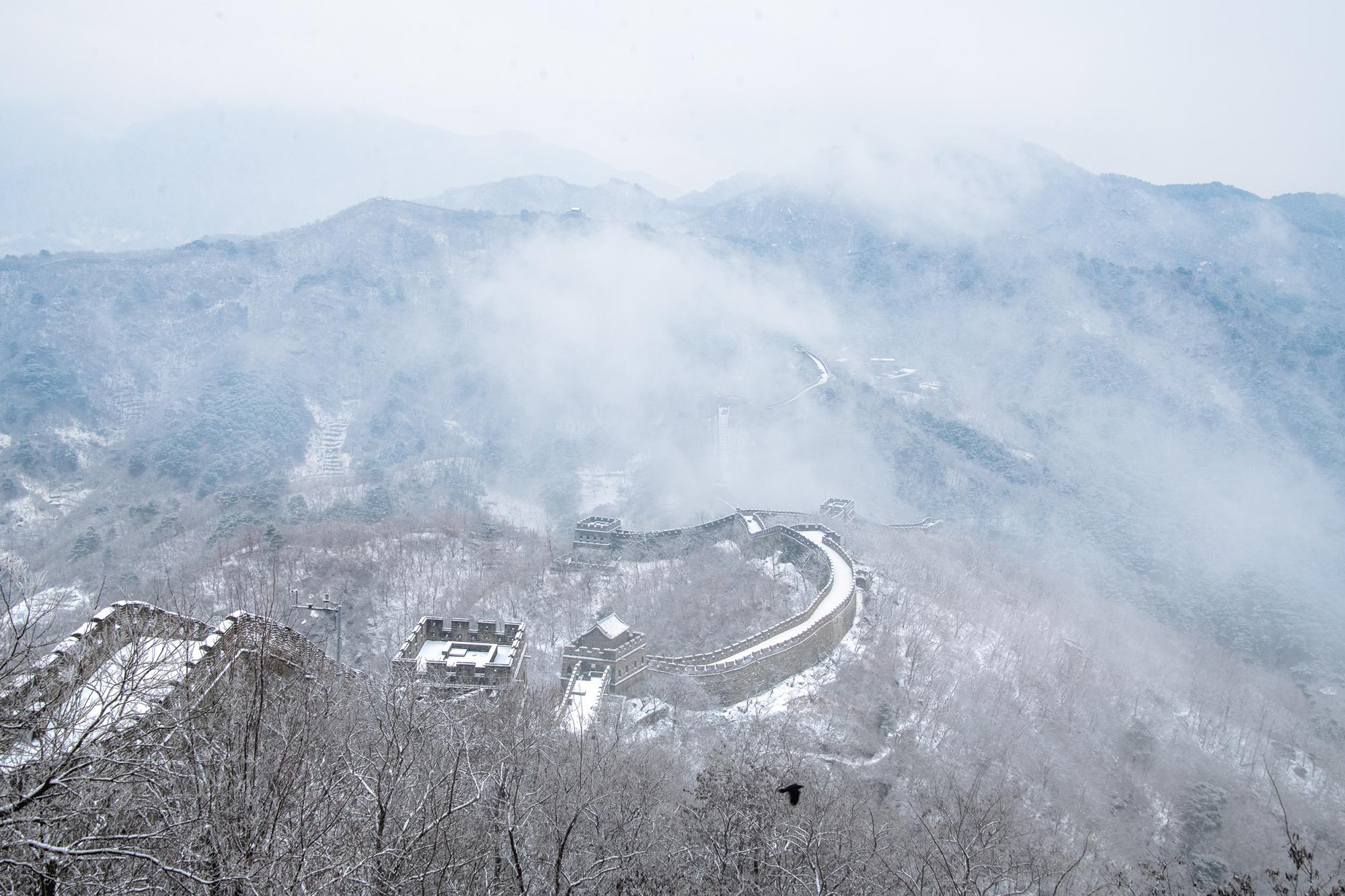 2月27日,雪后的慕田峪长城,白色巨龙在云雾之中蜿蜒翻滚,雄浑壮美。 田振辉 摄