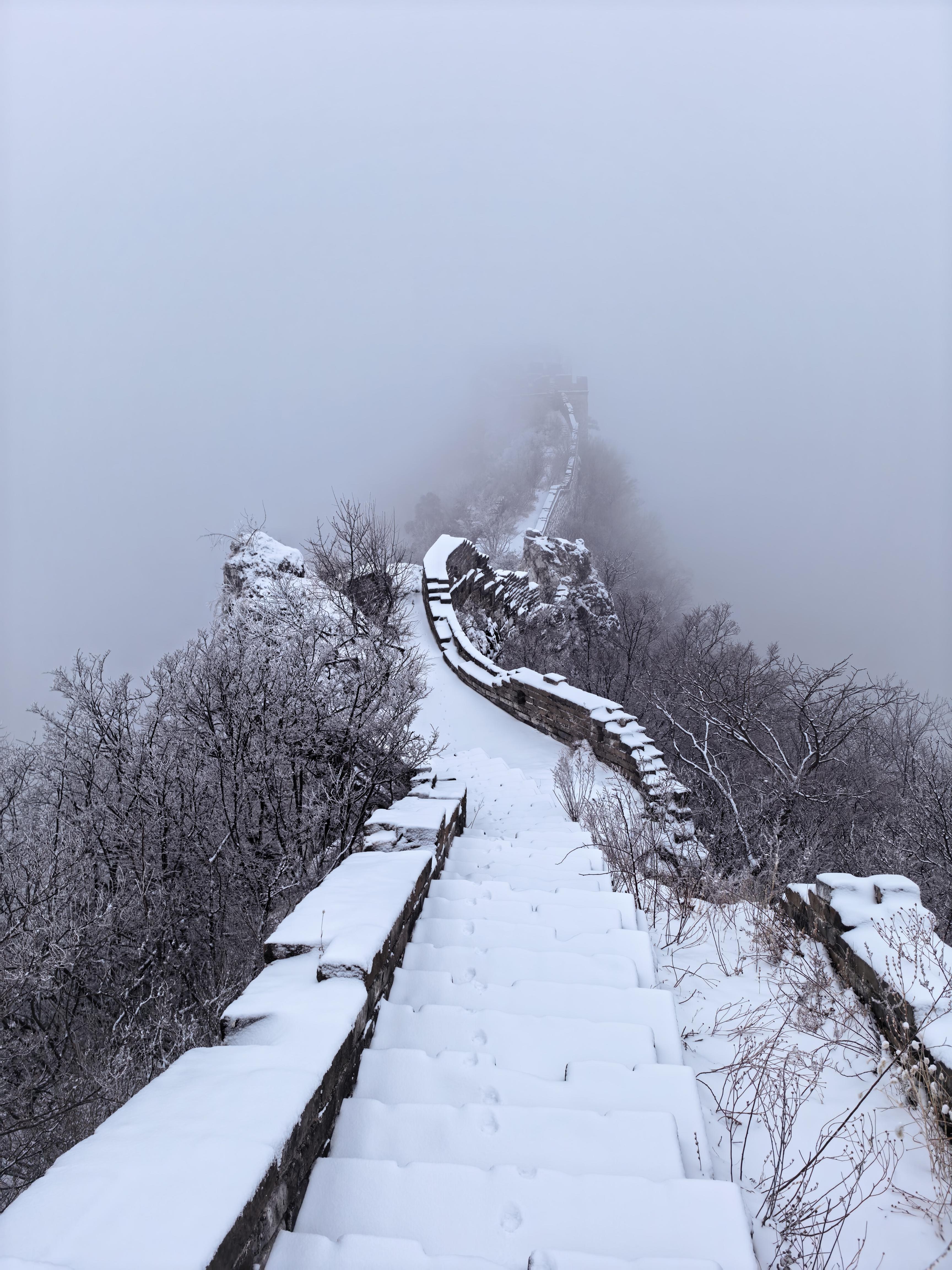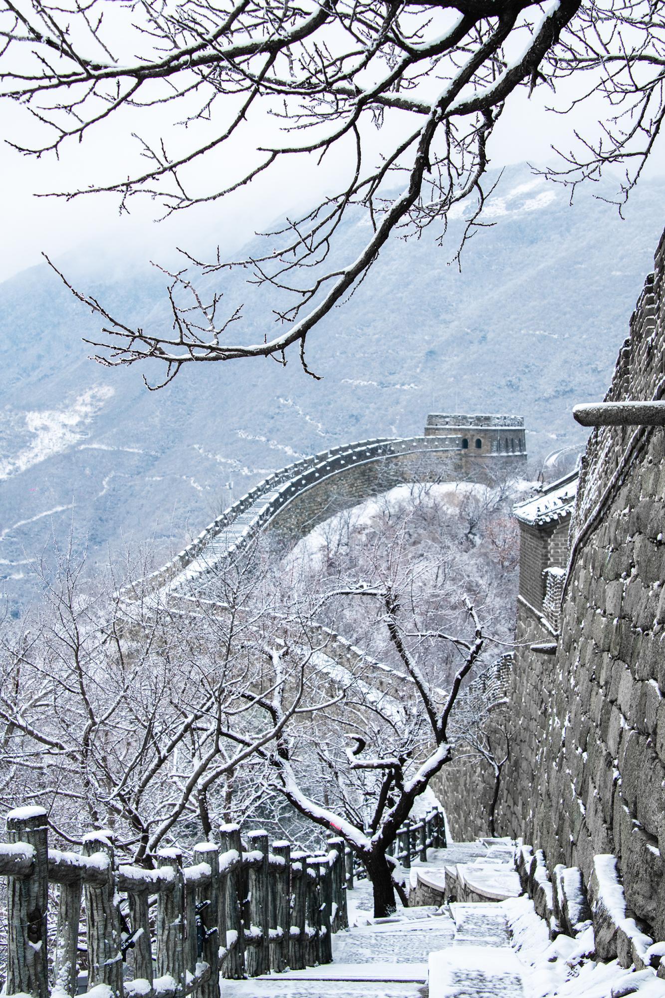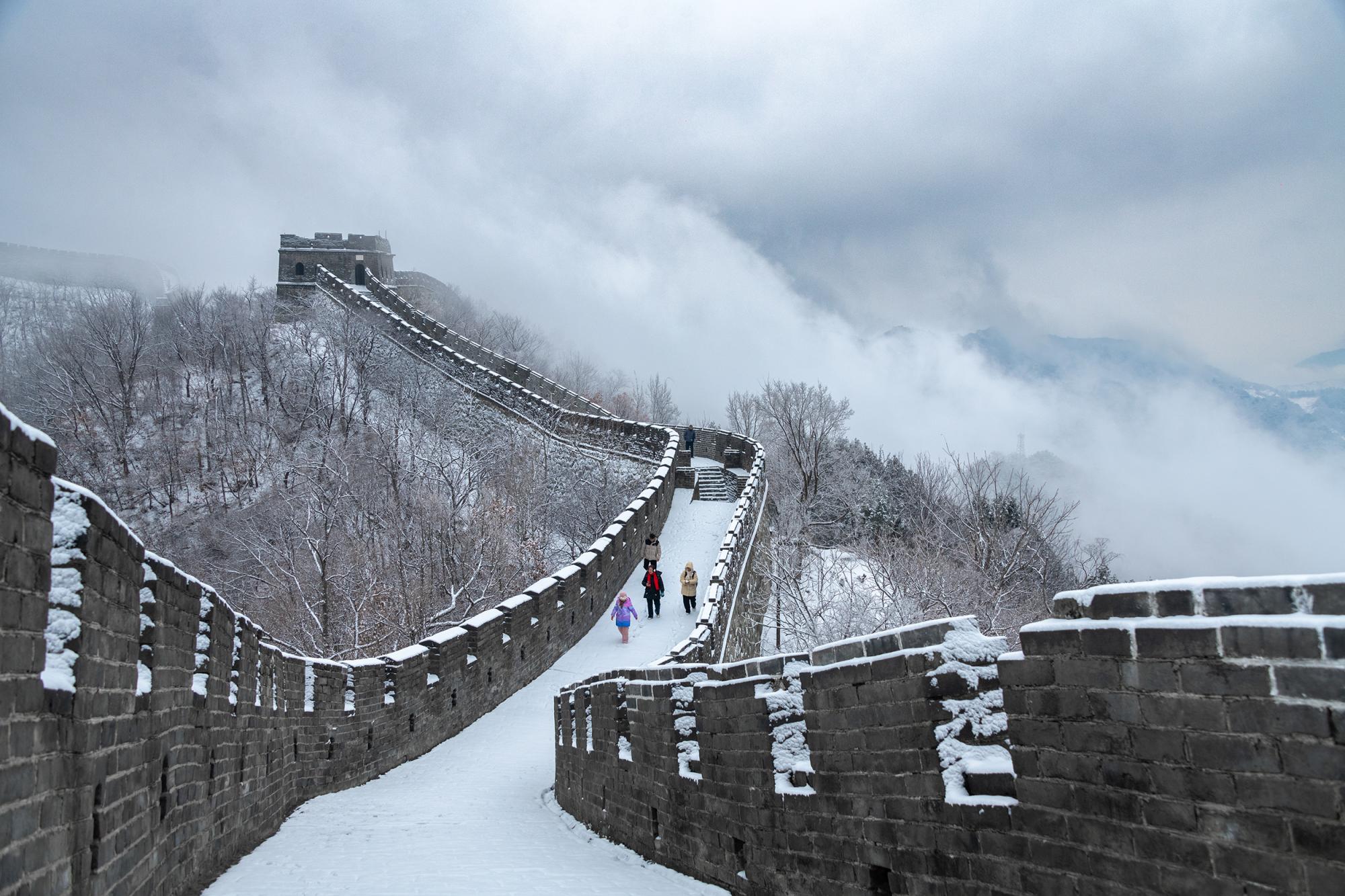 2月27日,雪后的慕田峪长城,白色巨龙在云雾之中蜿蜒翻滚,雄浑壮美。 田振辉 摄