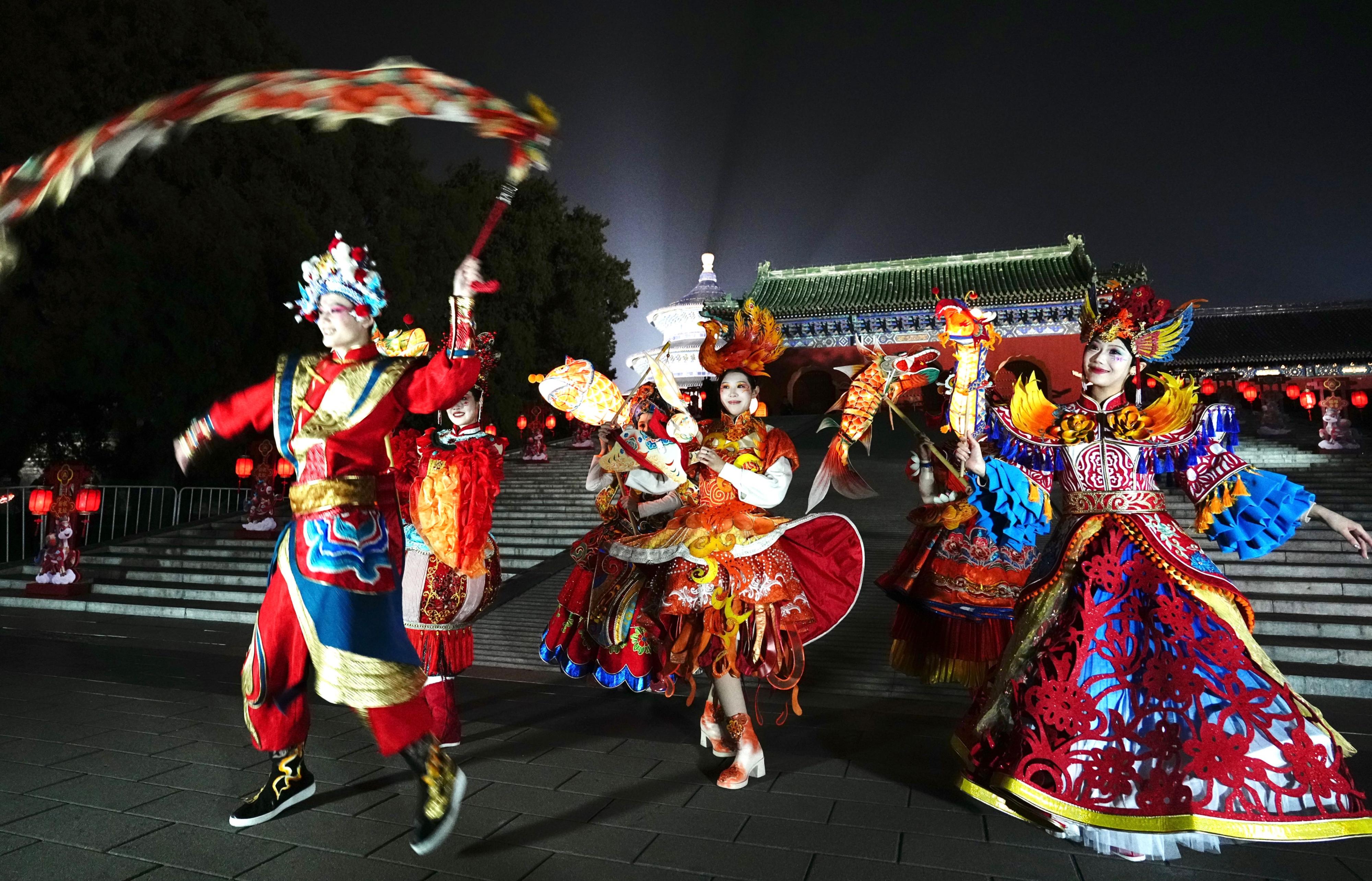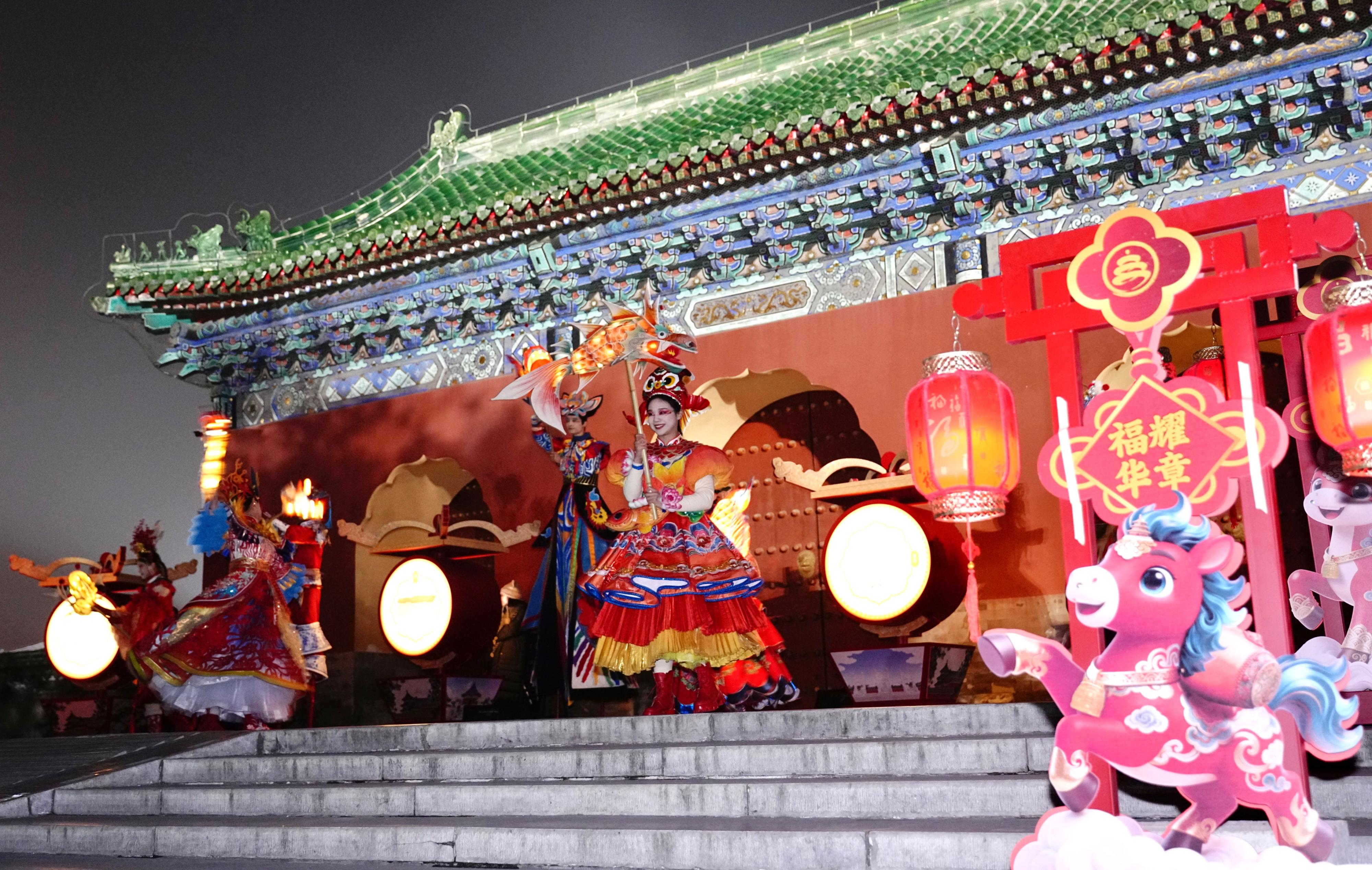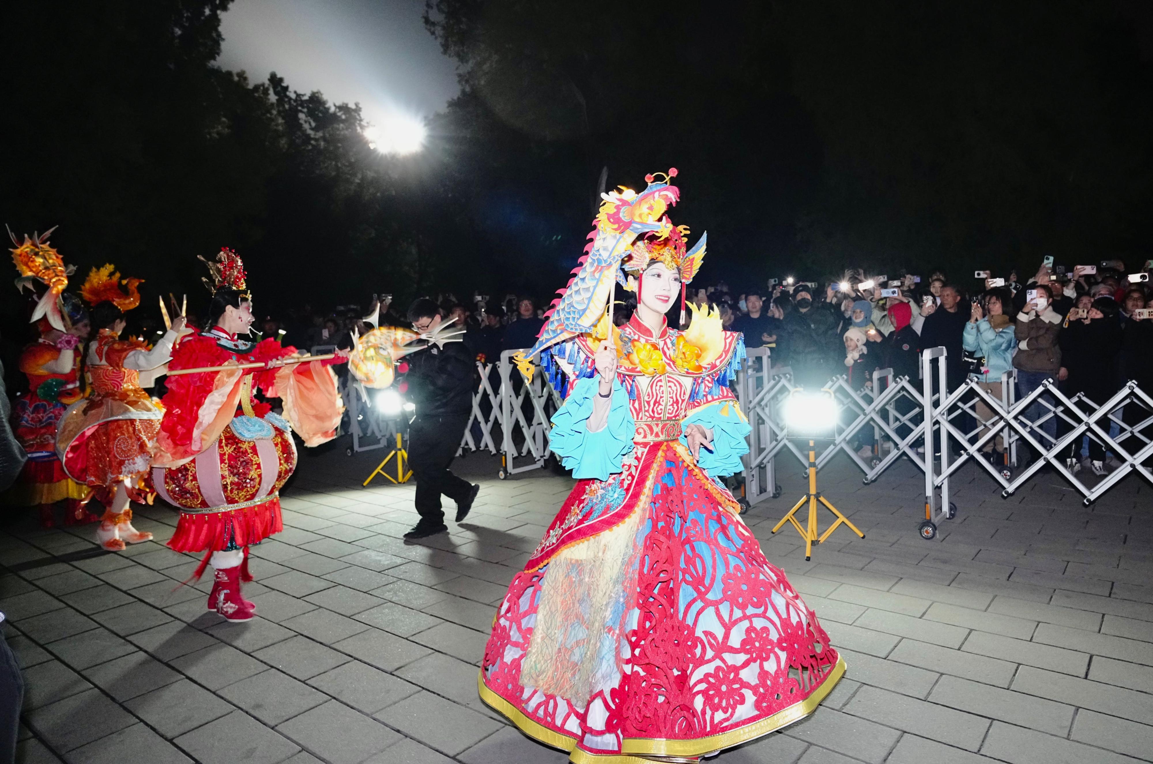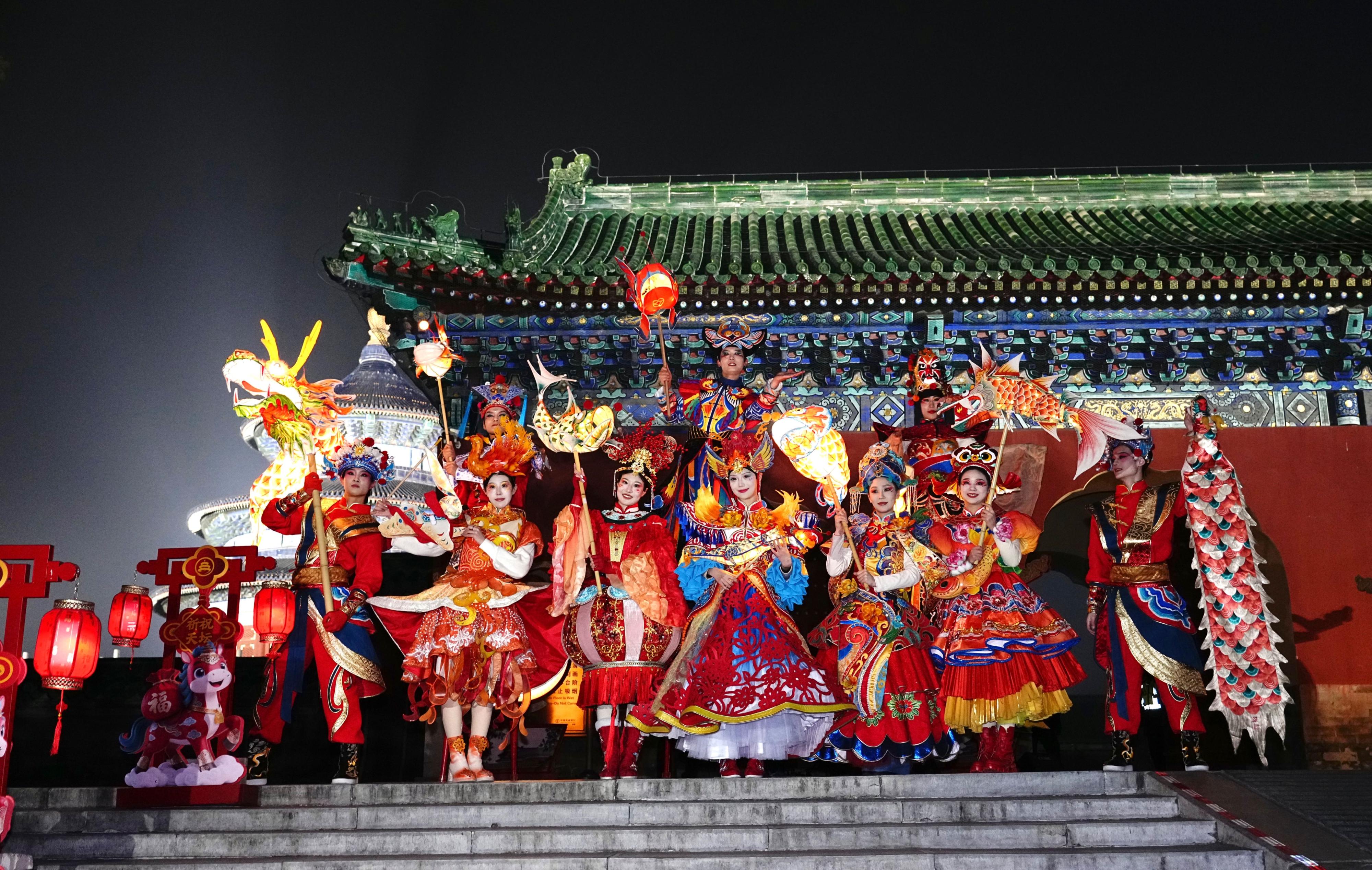 元宵佳节,悬灯结彩。3月3日晚上,在天坛公园祈年殿西下坡,一场《非遗灯韵》展演活动上演。