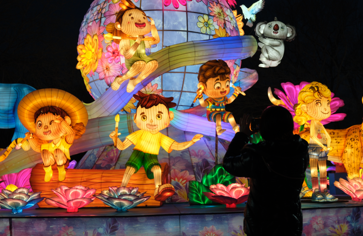 亚洲景区园区里,一组机械马彩灯吸引了众多游客驻足。一个小女孩正拉着妈妈的手不肯走。“妈妈快看!”女孩兴奋地指着正在缓缓摆头的彩灯。妈妈蹲下身,把女儿搂在怀里:“来,咱们和马儿合个影。”