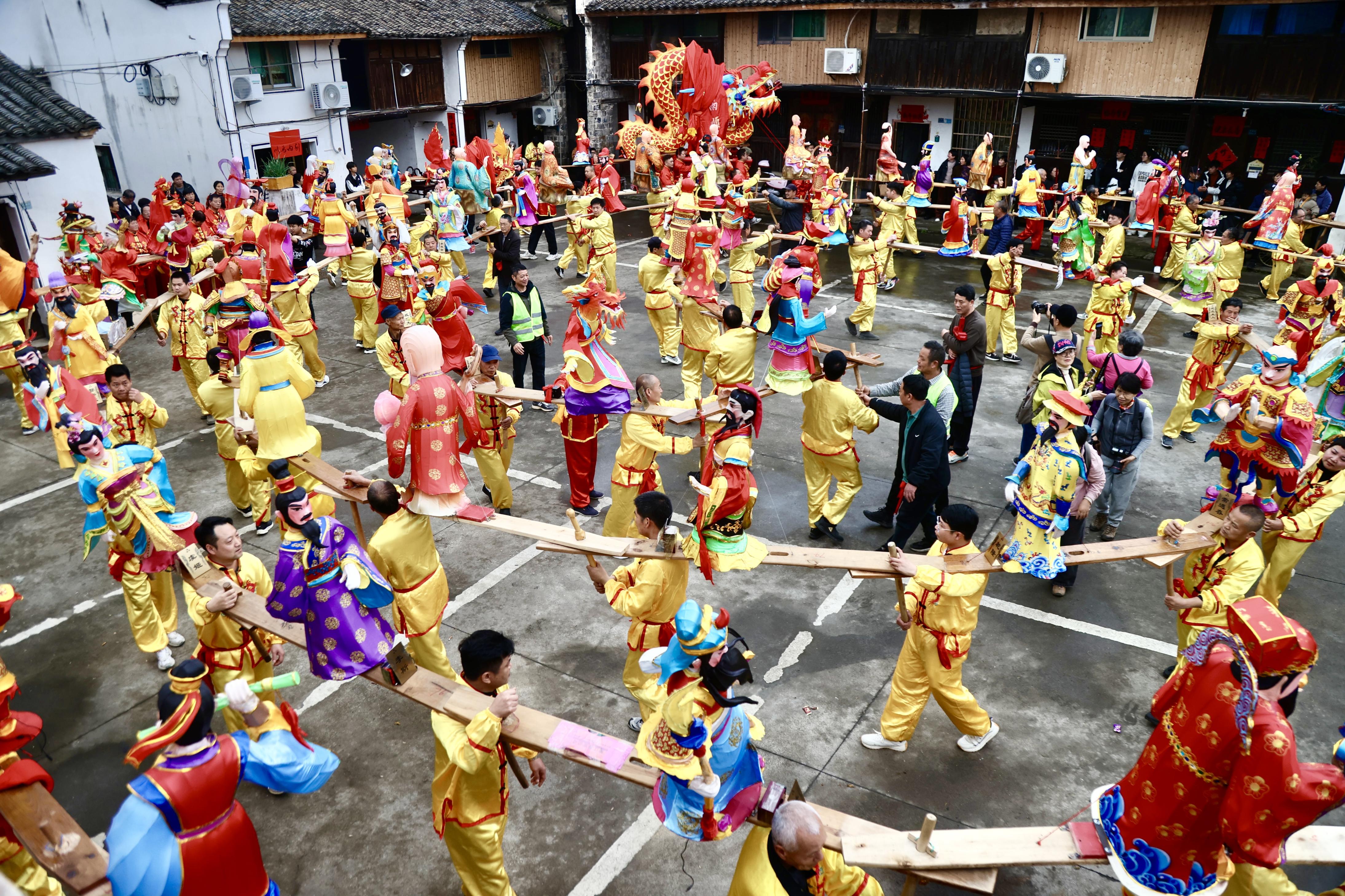 浙江浦江板凳龙民俗文化起源于唐代,是一种以板凳连接成龙身进行舞动的传统民俗,是闽浙地区非遗传承代表性项目。这一风俗源于古代的舞龙求雨仪式,核心寓意是祈求风调雨顺、人丁兴旺和团结协作。3月初,京城拍客周建林在浙江省金华市浦江县拍摄下板凳龙表演的精彩场景。