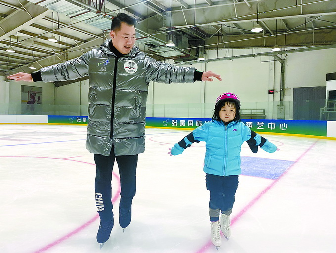 不仅在校园内,张昊也积极面向社会宣传推广着冰雪运动项目知识,他成为丰台区卢沟桥教育集群的冰雪运动顾问,并在丰台区建起了“张昊国际冰上运动演艺中心”的运动基地,带动更多人参与冰雪运动。“虽然不能以运动员身份参加北京冬奥会,但是作为一名冰雪人,我有责任有义务为在家门口举办的冬奥会出一份力,为北京冬奥会加油!”